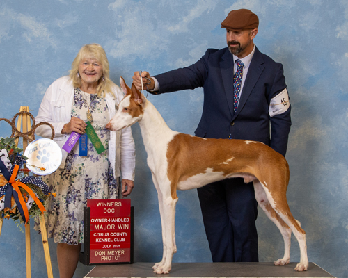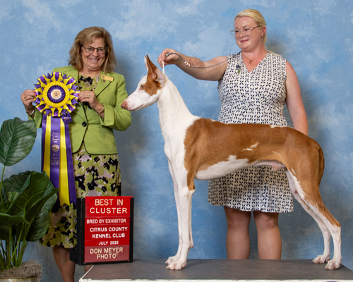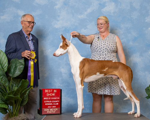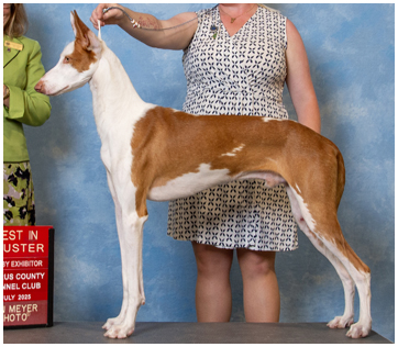 Gonzo is from the Spring 2024 "Chicken" litter between Fenix and Clarice. He lives here at Abbaio where he is major pointed toward his championship and is working towards competing in dock diving and lure coursing! Gonzo has had only a few show weekends, and the day he won his first major he also won Best Bred By Exhibitor in Show and then went on to win Best Bred By Exhibitor in Cluster! He won Best of Opposite Sex at the prestigious Morris & Essex Kennel Club over a champion the day he turned 17 months old!