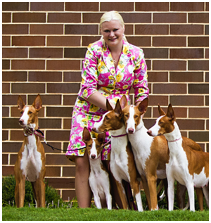 My name is Sarah Murphy, and I began showing dogs in 2001 when I was eleven years old. I bought my first Ibizan Hound in 2002 from Elaine Ferguson of Serqet. Over the years, I co-owned and showed several dogs with Elaine and others. In 2009, I met a bitch named Klementine whose dam was Harmony, a bitch I had owned with Elaine who was sold to the Browns of Serandida, and she set the course for Abbaio.