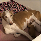 Jovian is from the Summer 2018 "Lemur" litter between Scorpio and Elin. He now lives in New York with his sire! In his very first show at 5 months old he won a Beginner Puppy Best in Show! In his first "big boy" show, he was Winners Dog for 2 points! His next weekend out at 7 months old, Jovian earned both of his majors! At just 8 months old, Jovian won his third major by winning Best of Breed at the Central NJ Hound specialty over a special! At his first lure coursing trial, Jovian won a second and a third in open for 5 points! After not having shown for 7 months, Jovian returned to the ring at 16 months old during the AKC/Royal Canin National Championship week of shows. He earned a Best of Opposite Sex over 4 champions at the Brevard Kennel Club on Wednesday for a fourth major, was Best of Breed out of 7 puppies at the Royal Canin Puppy & Junior Sweepstakes on Friday and was Best of Winners at the AKC National Championship on Saturday! At just over 2 years old, Jovian finished his dual championship! He sired his first litter of 2 puppies in 2021 and before 18 months of age, both puppies are dual champions with one also being a grand champion and one being a multiple best in field winner!