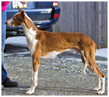 This was the very first litter every born at Abbaio. SERGIO was the #1 Ibizan Hound dog (all systems) in 2006, won Best of Breed at the Westminster Kennel Club 2010, the televised National Dog Show/Kennel Club of Philadelphia 2011, and won multiple group first wins and group placements over his career. In previous litters that he sired, he produced a Best in Show winner, multiple group winners and placers, as well as winners and placers at Westminster, Beezerfest and the National Specialty. KLEMENTINE was shown very limitedly and finished her championship in December 2010. Among her many wins to finish, she was Best of Breed at the televised National Dog Show/Kennel Club of Philadelphia 2009 and was the first Ibizan Hound in history to win Best of Breed at the prestigious Morris & Essex Kennel Club in 2010. After 4 weekends as a special, she became the ninth Ibizan Hound to earn the Grand Championship title. She won an IHCUS supported entry Best of Breed the weekend of the 2011 National Specialty and finished 2011 as the #10 Ibizan Hound (breed points). This is her first litter.