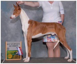 This is the second litter of Abbaio Ibizan Hounds. PRIMO was the first puppy from my first litter and was always a stand-out. He finished his championship in limited showing at 18 months of age, breeder-owner-handled, winning the breed over a special along the way. In Early 2013 he went to live in VA with a junior handler who won a Hound Group 4th with him in their first show together, piloting him to #10 Ibizan (All-Breed) in 2013 and #11 (All-Breed) in 2014 with multiple group placements and an IHCUS Supported Entry BOB. -This is his first litter. ELIN was breeder-owner-handled to her championship at 8 months of age by Jeannie Armstrong. She came to live at Abbaio at 10 months of age and had much success as a special, ending 2011 as the #9 Breed/#7 All-Breed Ibizan Hound after having competed for half of the year. She finished her grand championship owner-handled at 16 months of age, won Best in Field at the 2011 IHCUS National Specialty AKC Field Trial and an Award of Excellence at Eukanuba. In very limited showing (about 4 cumulative months), Elin finished 2012 as the #1 Owner-Handled (breed)/#3 Breed and All-Breed Ibizan, was Best of Breed at Westminster, Select at Beezerfest and the IHCUS National Specialty, the first owner-handled Bronze Grand Champion, High Scoring Open at the IHCUS National Specialty AKC Field Trial to finish her Field Championship (and become a Dual Champion) and was awarded three all breed Bests in Field at AKC lure coursing events. This is her first litter.
