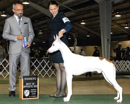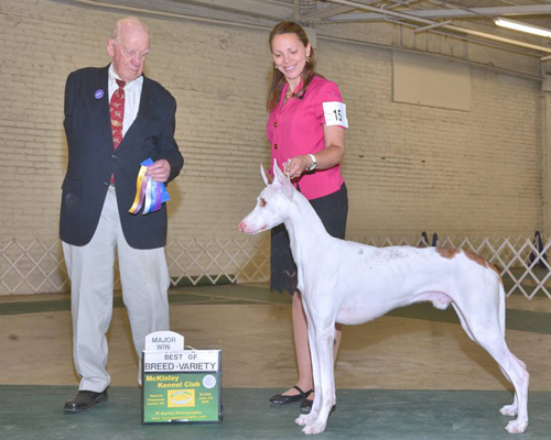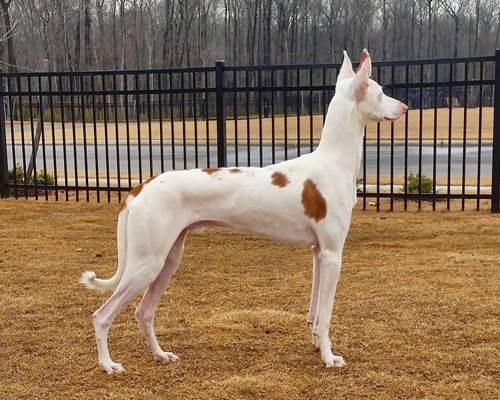 This litter was co-bred and whelped by Nichole Bartlett of Enzo Ibizan Hounds & Great Danes in Phoenix, AZ. The fathers of the sire, Maestro, and the mother, Fancy, are littermates that tie strongly into the pedigrees of my dogs. The sire, Maesttro, brings Spanish blood in from his mother's side.