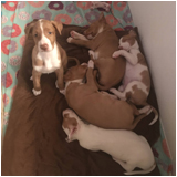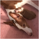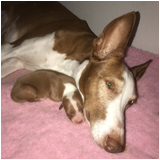 This is the twelfth litter born at Abbaio. Toaster is from my eigth litter between Scorpio (from my 3rd litter) and Ivy (from my 4th litter). He is a moderately-sized dog with a high station, beautiful expression and ear set, tail carriage and textbook movement in all directions. He was finished at 6 months old with 4 majors in 5 shows, including a Puppy Group 1st! He was Best of Breed at the Central NJ Hound Specialty at 8 months of age, made the cut at the 2017 IHCUS National Specialty and finished his grand championship winning Best of Opposite Sex at the 2017 AKC National Championship. Toaster is extremely sweet and loving, gets along well with all other dogs and is a happy and entertaining personality to have around. This is his first litter. Stella is from my first litter and is a wonderful dog in a small package. She finished her championship at a year of age from the bred by exhibitor class, won 5 Bred by Exhibitor Group 1st awards and was Best of Winners at Beezerfest 2012. She is a Best in Field winning grand champion/dual champion, a group placer, a supported entry Select winner, Best of Opposite in Sweepstakes at the 2011 IHCUS National Specialty, High Scoring Dual Champion of all breeds at the 2017 AKC NLCC and was a Top 20 Ibizan Hound in 2013! She is also a Canine Good Citizen, a Novice Agility Jumper and is a multi-champion producer. Stella is a very loyal sidekick, she has never met a stranger and passes her confident, goofy personality onto all of her puppies. This is her third and final litter, and truth-be-told this was an "oops" breeding due to a silent heat. Thankfully the breeding was caught and I was able to provide Stella with all of the same pre-natal care that any of my planned litters receive.