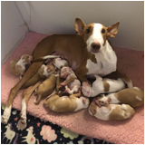 This is the eighteenth litter born at Abbaio. JAVA was bred by my good friend Lisa Puskas of Paradise Ibizans and owned by my friend Katie Belz DVM of Kamar Ibizans. He was Katie's foundation dog who not only became a multiple Best in Field winning dual champion, but was also titled in Rally, Canine Good Citizen and produced multiple dual champions in the first Kamar litter. A hunter by day and cuddler by night, he was very smart and eager to please. Java was tolerant of all dogs and puppies with an inate ability to diffuse any tension between others. He was hard-bodied and moderate with a masculine head and clean movement. This is his second litter. KENDRA is from my fourth litter between Simba and Elin. She is toward the top of the standard for height in bitches, well-muscled and naturally keeps herself in hard hunting condition. She finished her championship at just a year old with several majors, Best of Breeds over specials and group placements from the classes. She had a short but decorated specials career, winning 2 Best of Breeds and a Select the week of AKC/Eukanuba with an Award of Excellence at the National Championship. She won Select at Westminster in 2016 and Best of Breed two of the days of Beezerfest in Louisville, KY as well as a group placement. In 2018, she came out to play and wound up winning Best in Show at the IHCUS National Specialty! This is her second litter.