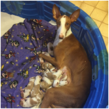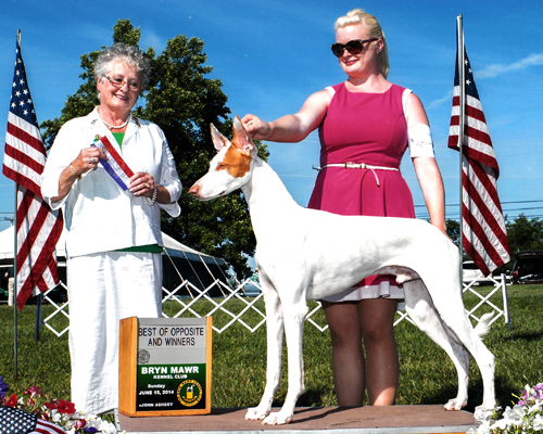 Scorpio is from the Summer 2013 "Star" litter between Orion and Stella. Also known as "Dashiell" to his family, he lives with Chelsea Lipp in upstate New York and in just 2 weekends of shows, has 10 points with both majors. He won his first major by going Best of Breed over the #1 Ibizan Hound in the country at just a year of age! At just 14 months old, Scorpio finished his championship, becoming the 10th AKC champion bred here at Abbaio! In September 2016 he sired his first litter out of our Ivy which earned him his ROM in less than a year and a half! Scorpio is a very even-tempered male who is friendly with all other dogs.
