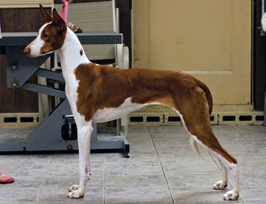 Stella is from the Spring 2011 "Italian" litter between Sergio and Klementine. At 6 months and 3 days old she debuted at the 2011 IHCUS National Specialty going Best of Opposite in Sweepstakes, following that with a major Reserve at one of the following supported entries. She was finished at 12 months old breeder-owner-handled from the bred-by class. Stella is extremely outgoing and loves to be the center of attention. I call her my "Golden Retriever in an Ibizan suit" because she has never met a stranger. She completed the requirements for her Junior Courser title the same day she finished her Championship. In May 2013, Stella won her first group placement, becoming the third group placing puppy from the "Italian" litter, the second in the USA. She was Select at the IHCUS Supported Entry in Philadelphia in December 2013 and finished her Grand Championship in February 2014. At the 2014 IHCUS National Specialty, Stella won her open stake in AKC lure coursing for a 5 point major! In January 2017, Stella finished her field championship in style winning a Best in Field and becoming the first Abbaio Dual Champion! At the 2017 NLCC, Stella won 1st in Veterans both days, tied for the highest combined score in Ibizan Hounds, won the Breeder Stake with her great-niece Dharma, won High Scoring Dual Champion Ibizan Hound and on to win the "Flatout Trophy" for High Scoring Dual Champion of All Breeds! After not having competed in agility for 4.5 years due to life getting in the way, Stella won Highest Scoring Ibizan in Trial at the 2018 IHCUS National Specialty agility trial and earned her Novice Jumper title! At the 2018 NLCC, Stella again won 1st in Veterans both days, had the highest combined score, won the Breeder Stake again with her great-niece, Dharma, not only for Ibizans but also for All Breeds, and was the Highest Scoring Veteran in Trial of all breeds! 2 months shy of her 10th birthday, Stella completed her LCX title!